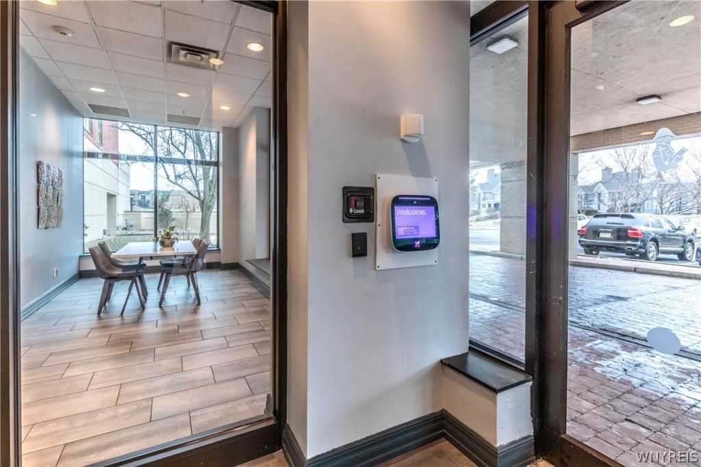 Welcome to Admiral's Walk-where comfort, convenience, and waterfront living come together in the heart of Buffalo. This pet-friendly 1-bedroom, 1-bathroom condominium offers a bright, open living space filled with natural light from stunning floor-to-ceiling windows. Step out onto your private balcony and take in breathtaking views of Lake Erie and the Erie Basin Marina-perfect for morning coffee or evening relaxation. Inside, the unit features built-in storage in every room, maximizing both function and style, along with a built-in speaker system for seamless entertaining. The convenience of in-unit laundry adds to the ease of everyday living. Residents of Admiral's Walk enjoy a secure building with controlled entry, underground parking, and heated storage. Amenities include a well-equipped fitness center with sauna and a beautifully maintained community terrace for relaxing or socializing. The HOA fee covers water, common area maintenance, trash, and snow removal, offering low-maintenance living year-round. Most furnishings are included, making this an exceptional turnkey opportunity. Ideally located within walking distance to Buffalo's vibrant waterfront, you'll enjoy easy access to Erie Basin Marina, Canalside, Naval Park, and downtown Buffalo's dining, entertainment, and cultural attractions. Experience the best of waterfront living!